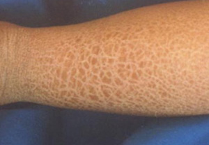 1.严重的角质层增厚:患者的皮肤可能会变得异常粗糙,并且角质层会过度增生,形成鳞状的皮肤。